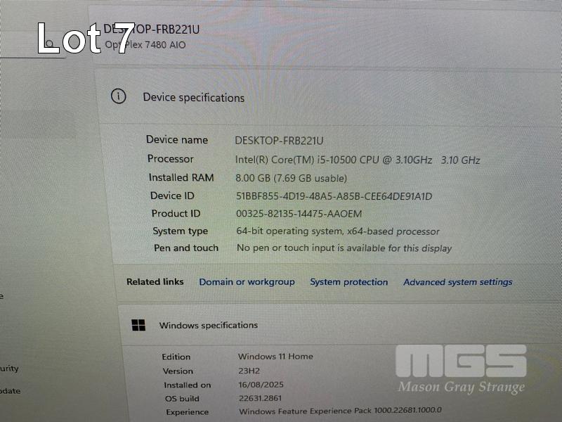 ALL-IN-ONE PC, DELL OPTIPLEX 7480, CORE i5 10500 (10TH GEN) @ 3.1GHz, 8GB DDR4 RAM, 512GB NVMe M.2 SSD, INBUILT 23.8" FHD WIDESCREEN (1920x1080), INTEL HD VIDEO, WEBCAM, 5 x USB, 1 x USB-C, Wi-Fi, BLUETOOTH, WINDOWS 11 HOME INSTALLED, KEYBOARD & MOUSE S/N:HJMWVD3