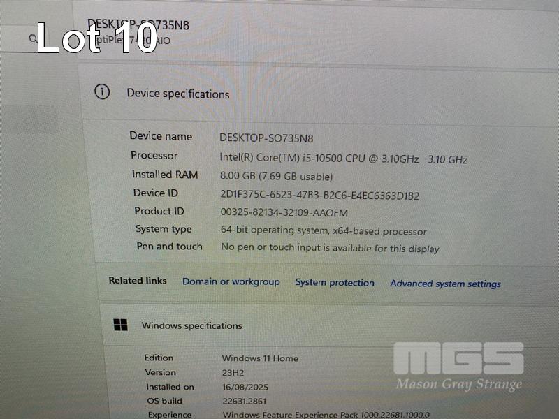 ALL-IN-ONE PC, DELL OPTIPLEX 7480, CORE i5 10500 (10TH GEN) @ 3.1GHz, 8GB DDR4 RAM, 512GB NVMe M.2 SSD, INBUILT 23.8" FHD WIDESCREEN (1920x1080), INTEL HD VIDEO, WEBCAM, 5 x USB, 1 x USB-C, Wi-Fi, BLUETOOTH, WINDOWS 11 HOME INSTALLED, KEYBOARD & MOUSE S/N:8JMWVD3