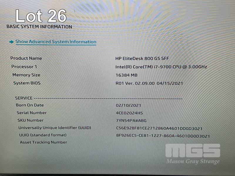 DESKTOP PC, HP ELITEDESK 800 G5 SFF, CORE i7 9700 (9TH GEN) @ 3GHz, 16GB DDR4 RAM, 256GB NVMe M.2 SSD, DVD-RW, WINDOWS 11 PRO INSTALLED, KEYBOARD & MOUSE S/N:4CE02024HS