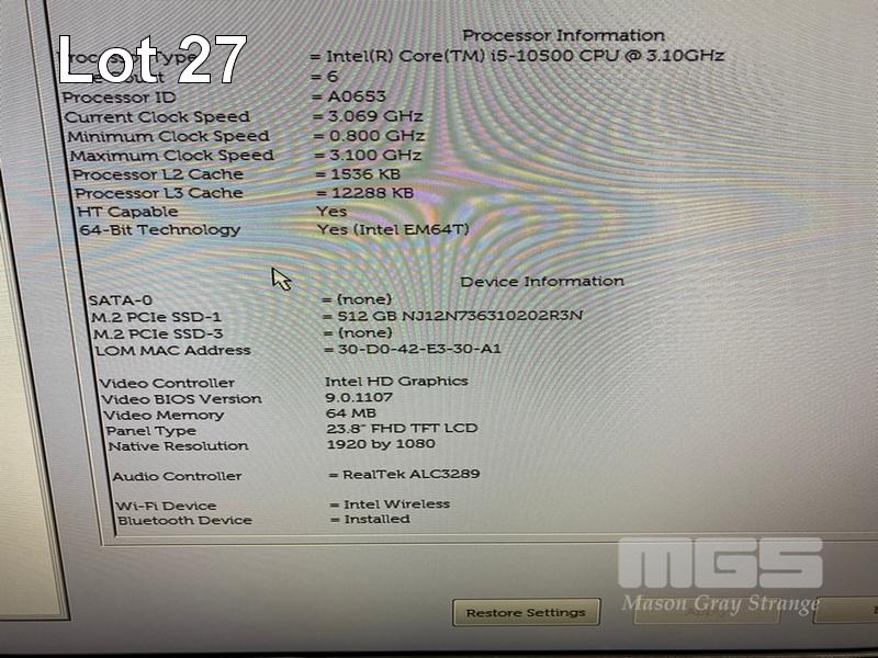 ALL-IN-ONE PC, DELL OPTIPLEX 7480, CORE i5 10500 (10TH GEN) @ 3.1GHz, 8GB DDR4 RAM, 512GB NVMe M.2 SSD, INBUILT 23.8" FHD WIDESCREEN (1920x1080), INTEL HD VIDEO, WEBCAM, 5 x USB, 1 x USB-C, Wi-Fi, BLUETOOTH, WINDOWS 11 HOME INSTALLED, KEYBOARD & MOUSE S/N:DPW54F3