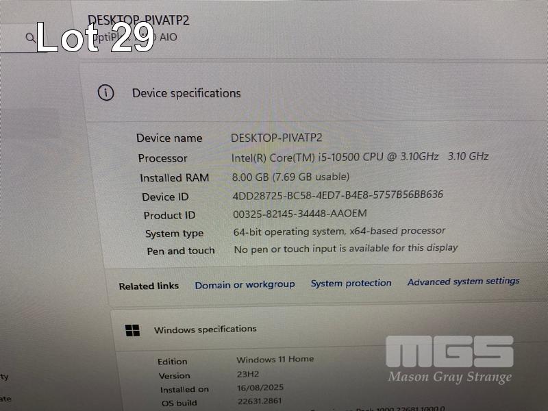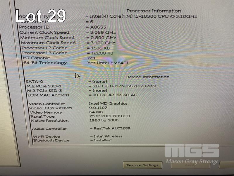 ALL-IN-ONE PC, DELL OPTIPLEX 7480, CORE i5 10500 (10TH GEN) @ 3.1GHz, 8GB DDR4 RAM, 512GB NVMe M.2 SSD, INBUILT 23.8" FHD WIDESCREEN (1920x1080), INTEL HD VIDEO, WEBCAM, 5 x USB, 1 x USB-C, Wi-Fi, BLUETOOTH, WINDOWS 11 HOME INSTALLED, KEYBOARD & MOUSE S/N:CPW54F3