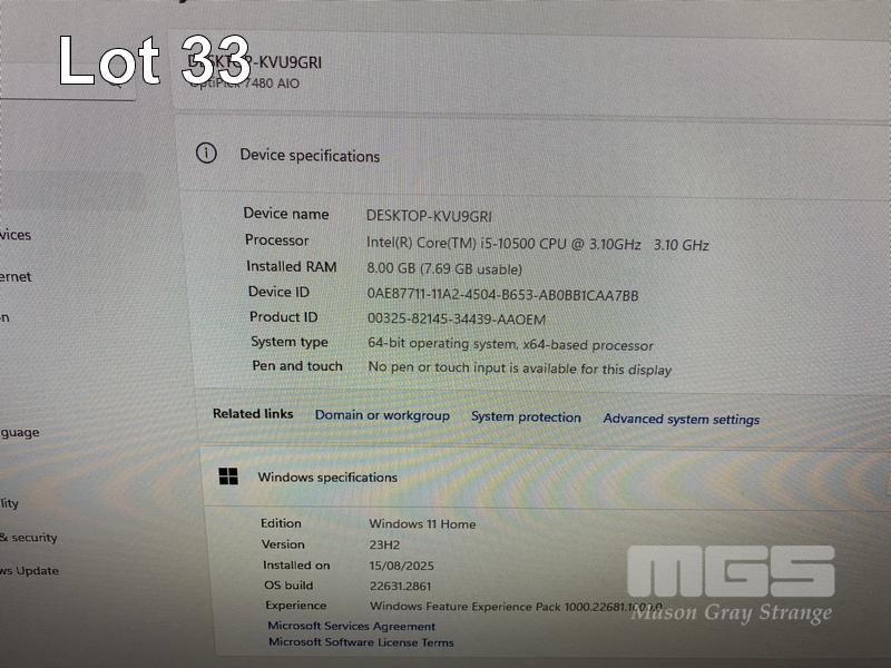 ALL-IN-ONE PC, DELL OPTIPLEX 7480, CORE i5 10500 (10TH GEN) @ 3.1GHz, 8GB DDR4 RAM, 512GB NVMe M.2 SSD, INBUILT 23.8" FHD WIDESCREEN (1920x1080), INTEL HD VIDEO, WEBCAM, 5 x USB, 1 x USB-C, Wi-Fi, BLUETOOTH, WINDOWS 11 HOME INSTALLED, KEYBOARD & MOUSE S/N:2PW54F3