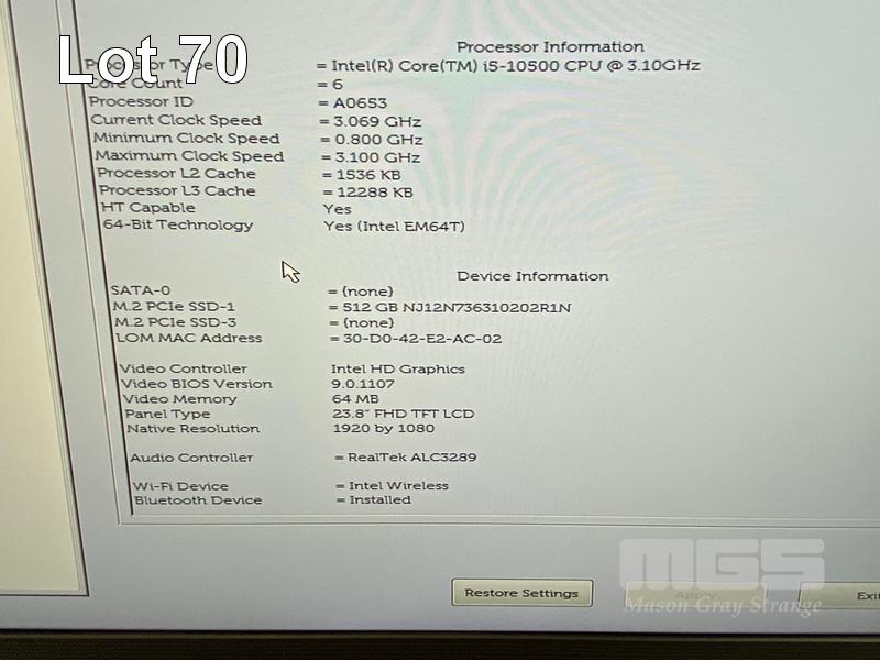 ALL-IN-ONE PC, DELL OPTIPLEX 7480, CORE i5 10500 (10TH GEN) @ 3.1GHz, 8GB DDR4 RAM, 512GB NVMe M.2 SSD, INBUILT 23.8" FHD WIDESCREEN (1920x1080), INTEL HD VIDEO, WEBCAM, 5 x USB, 1 x USB-C, Wi-Fi, BLUETOOTH, WINDOWS 11 HOME INSTALLED, KEYBOARD & MOUSE S/N:JHMWVD3