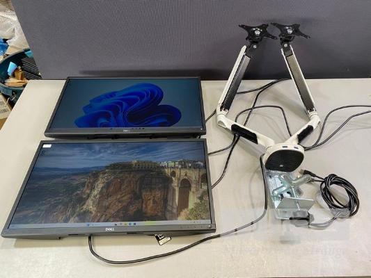 2 x MONITORS, DELL E2420H 23.8" IPS LED-BL LCD WIDESCREEN, DISPLAYPORT, VGA (WITH CABLES) WITH DUAL DESK MOUNT MONITOR ARM, WHITE S/N:9KN4HH3, 9KP5HH3