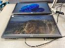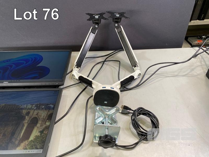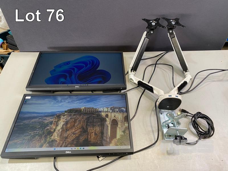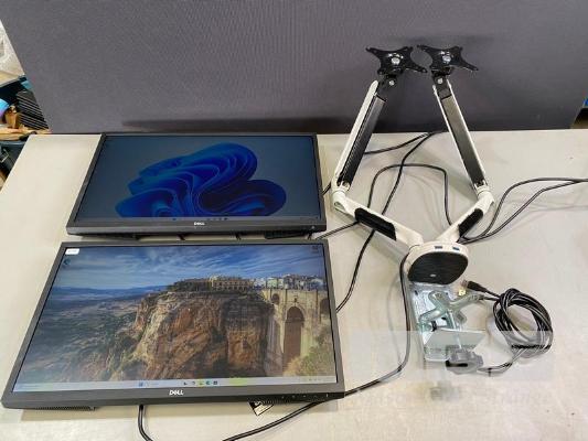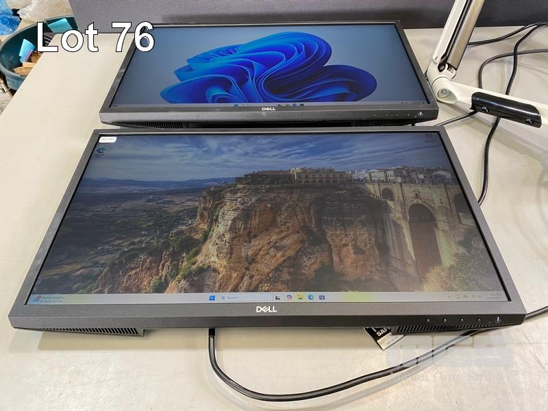 2 x MONITORS, DELL E2422H 23.8" IPS LED-BL LCD WIDESCREEN, DISPLAYPORT, VGA (WITH CABLES) WITH DUAL DESK MOUNT MONITOR ARM, WHITE S/N:G73B7J3, G7597J3