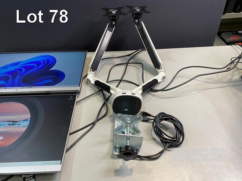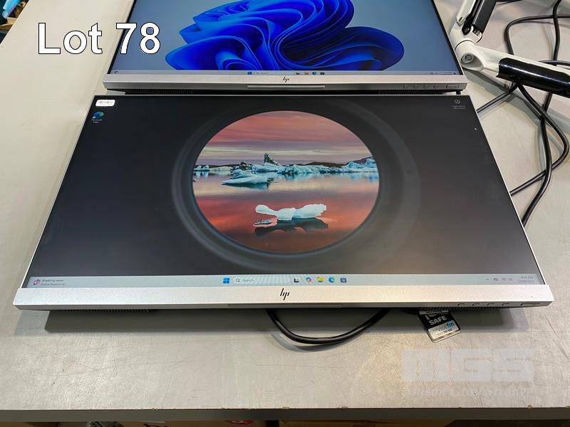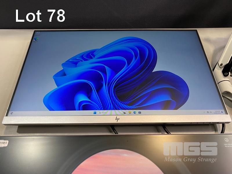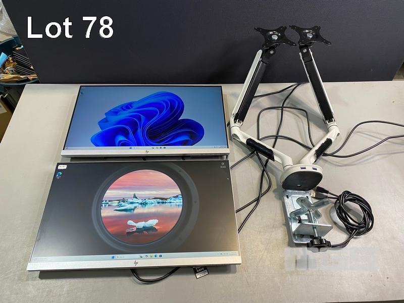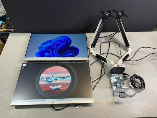 2 x MONITORS, HP ELITEDISPLAY E243 23.8" IPS LED-BL WIDESCREEN, HDMI, DISPLAYPORT, VGA (WITH CABLES) WITH DUAL DESK MOUNT MONITOR ARM, WHITE S/N:CNK0022MNH, CNK0022BP0