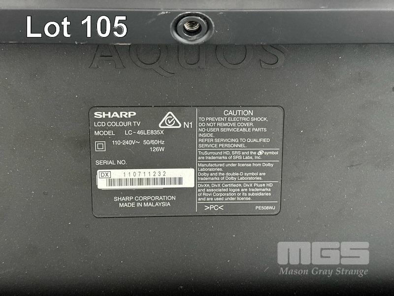SHAPR AQUOS 46" LED LCD TV, MODEL LC-46LE835X (NO REMOTE, NO STAND) S/N:110711232