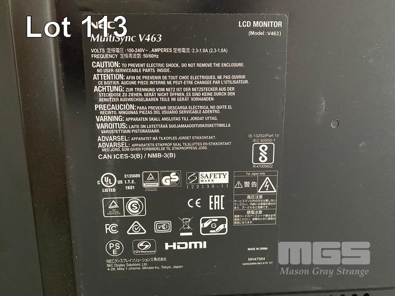 MONITOR, NEC MULTISYNC V463 46" COMMERCIAL LCD DISPLAY (NO REMOTE, NO STAND) S/N:7Y041518NB