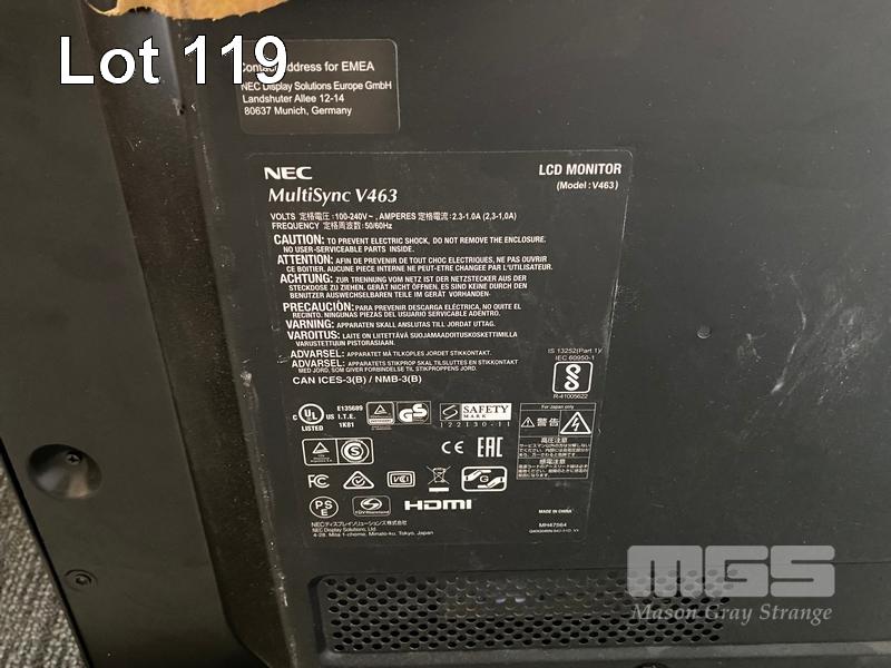 MONITOR, NEC MULTISYNC V463 46" COMMERCIAL LCD DISPLAY (NO REMOTE, NO STAND) S/N:7Y041637NB