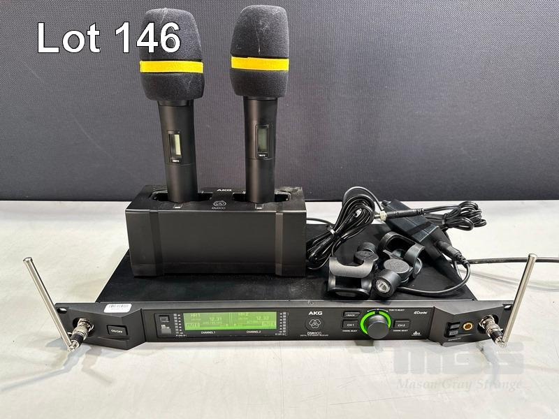 AKG DSR800 DIGITAL WIRELESS STATIONARY RECEIVER WITH 2 x AKG DHT800 HANDHELD MICROPHONES, 1 x AKG CU800 CHARGING UNIT & 1 x POWER SUPPLY S/N:V152300729
