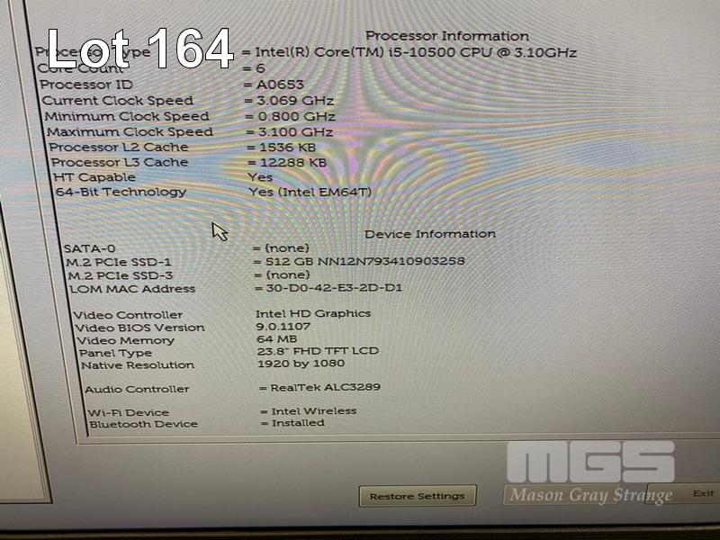 ALL-IN-ONE PC, DELL OPTIPLEX 7480, CORE i5 10500 (10TH GEN) @ 3.1GHz, 8GB DDR4 RAM, 512GB NVMe M.2 SSD, INBUILT 23.8" FHD WIDESCREEN (1920x1080), INTEL HD VIDEO, WEBCAM, 5 x USB, 1 x USB-C, Wi-Fi, BLUETOOTH, WINDOWS 11 HOME INSTALLED, KEYBOARD & MOUSE S/N:FNW54F3