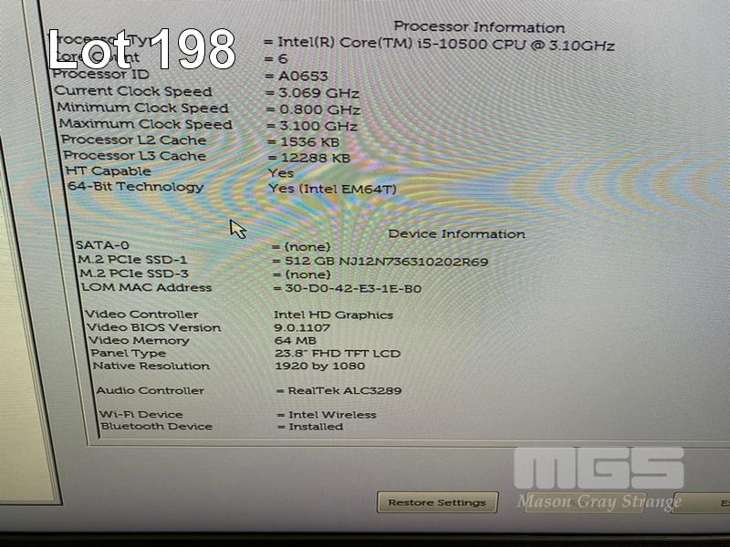 ALL-IN-ONE PC, DELL OPTIPLEX 7480, CORE i5 10500 (10TH GEN) @ 3.1GHz, 8GB DDR4 RAM, 512GB NVMe M.2 SSD, INBUILT 23.8" FHD WIDESCREEN (1920x1080), INTEL HD VIDEO, WEBCAM, 5 x USB, 1 x USB-C, Wi-Fi, BLUETOOTH, WINDOWS 11 HOME INSTALLED, KEYBOARD & MOUSE S/N:G9T54F3