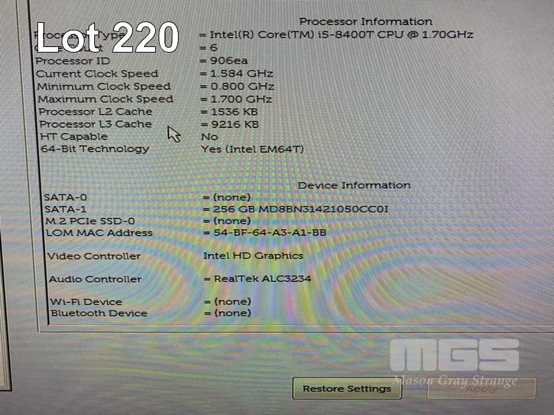 DESKTOP PC, DELL OPTIPLEX 3060 MICRO, CORE i5 8400T (8TH GEN) @ 1.7GHz, 8GB DDR4 RAM, 256GB M.2 SSD, INTEL HD VIDEO, 6 x USB, WINDOWS 11 PRO INSTALLED (NO POWER SUPPLY, NO KEYBOARD, NO MOUSE) S/N:GLFV8T2