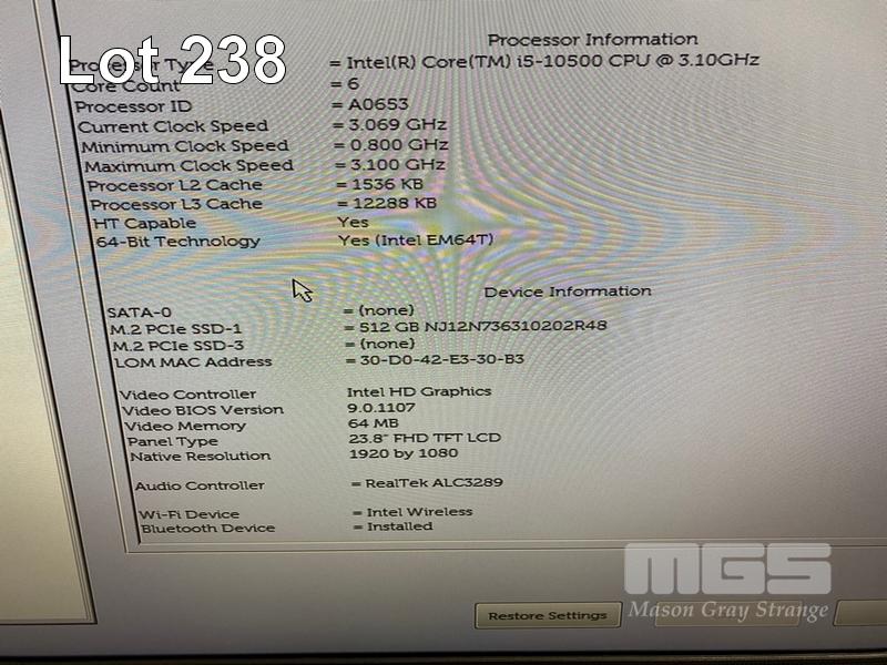 ALL-IN-ONE PC, DELL OPTIPLEX 7480, CORE i5 10500 (10TH GEN) @ 3.1GHz, 8GB DDR4 RAM, 512GB NVMe M.2 SSD, INBUILT 23.8" FHD WIDESCREEN (1920x1080), INTEL HD VIDEO, WEBCAM, 5 x USB, 1 x USB-C, Wi-Fi, BLUETOOTH, WINDOWS 11 HOME INSTALLED, KEYBOARD & MOUSE S/N:BPW54F3