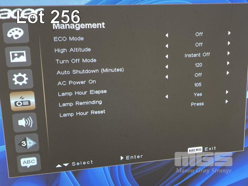 PROJECTOR, ACER H6517ST DLP, 3000 LUMENS, 105 HOURS SHOWING WITH REMOTE & BAG S/N:53200084659
