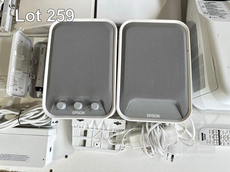 PROJECTOR, EPSON EB-695Wi ULTRA SHORT THROW, 3500 LUMENS, 255 NORMAL HOURS & 56 ECO HOURS SHOWING & REMOTE WITH BRACKET, ELPSP02 SPEAKERS, CONTROL BOX, H599LCU TOUCH UNIT & INTERACTIVE PENS S/N:X3QP0900163