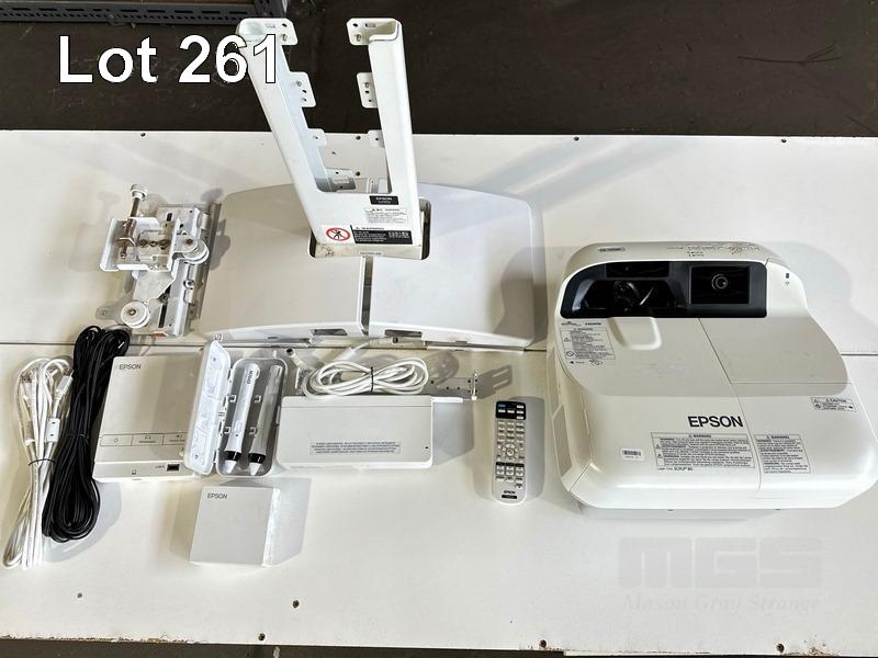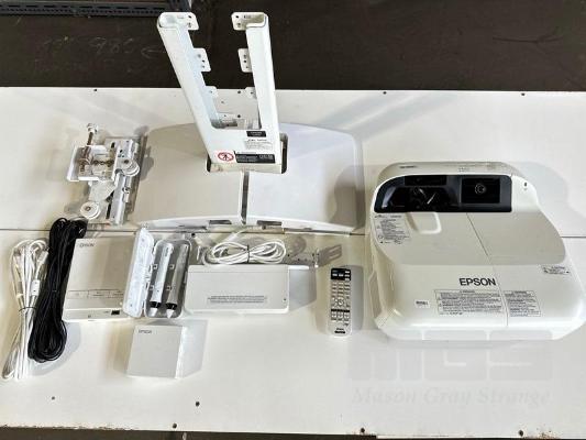 PROJECTOR, EPSON EB-595Wi ULTRA SHORT THROW, 3300 LUMENS, 1,720 NORMAL HOURS & 48 ECO HOURS SHOWING & REMOTE WITH BRACKET, CONTROL BOX, H599LCU TOUCH UNIT & INTERACTIVE PENS S/N:UHPF510325L