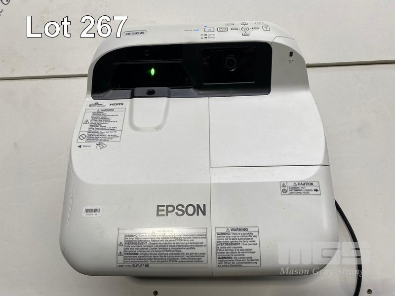 PROJECTOR, EPSON EB-595Wi ULTRA SHORT THROW, 3300 LUMENS, 2879 NORMAL HOURS & 129 ECO HOURS SHOWING & REMOTE WITH TOUCH UNIT, INTERACTIVE PENS & BRACKET S/N:UHPK6300072