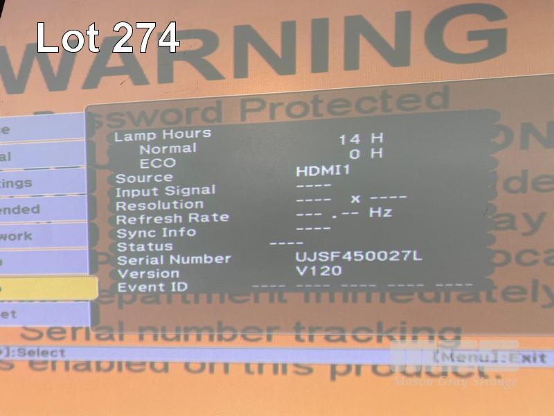 PROJECTOR, EPSON EB-585We ULTRA SHORT THROW, 3300 LUMENS, 14 NORMAL HOURS SHOWING & REMOTE WITH BRACKET S/N:UJSF450027L