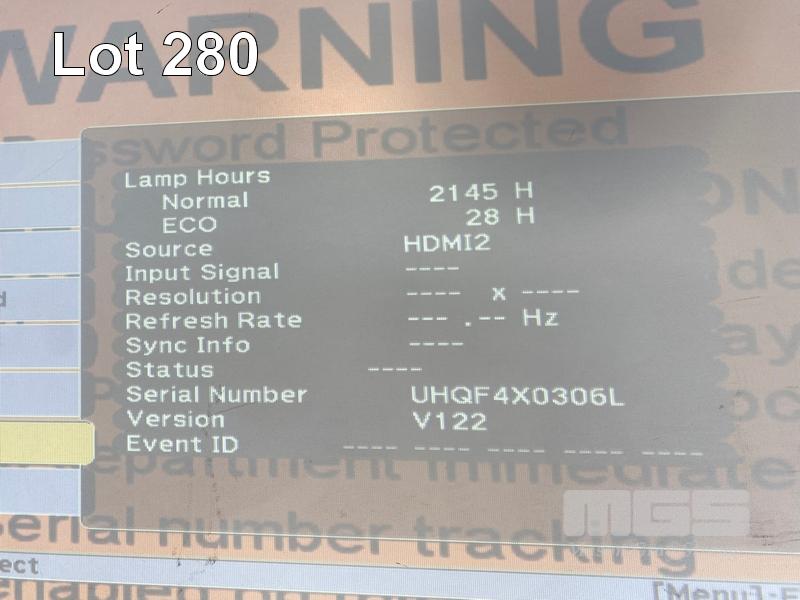 PROJECTOR, EPSON EB-595Wie ULTRA SHORT THROW, 3300 LUMENS, 2145 NORMAL HOURS & 28 ECO HOURS SHOWING & REMOTE WITH BRACKET S/N:UHQF4X0306L