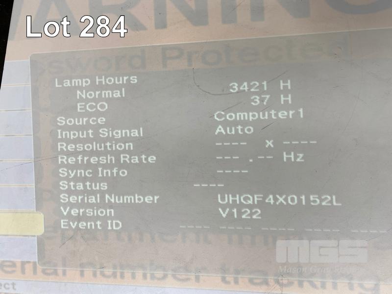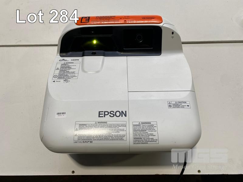 PROJECTOR, EPSON EB-595Wie ULTRA SHORT THROW, 3300 LUMENS, 3421 NORMAL HOURS & 37 ECO HOURS SHOWING & REMOTE WITH BRACKET S/N:UHQF4X0152L