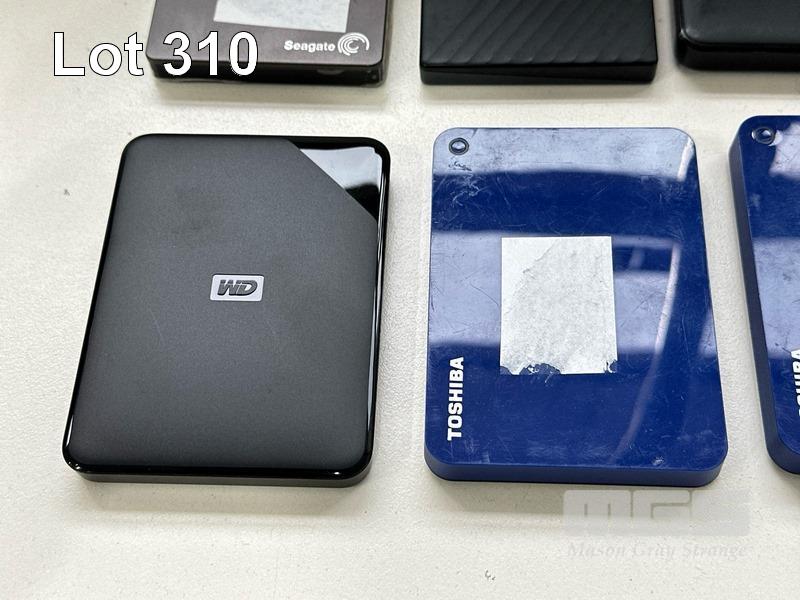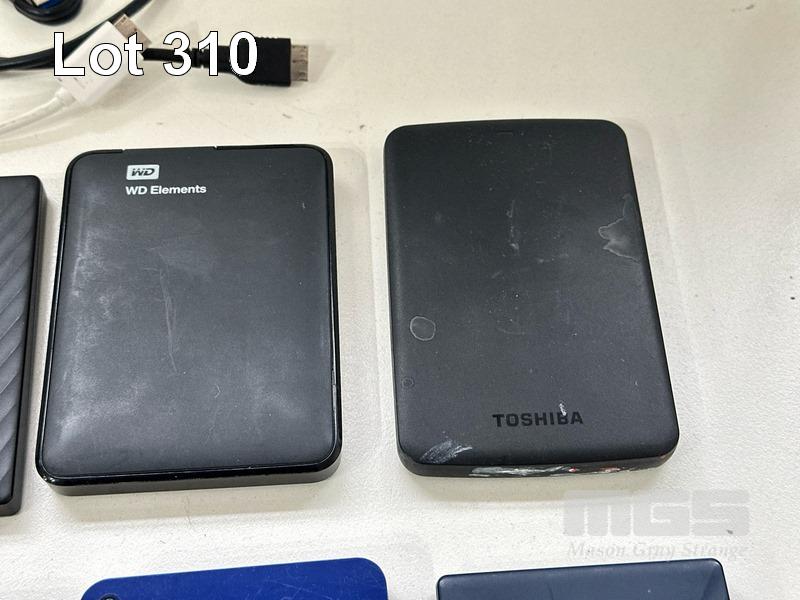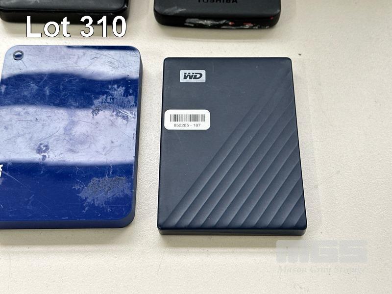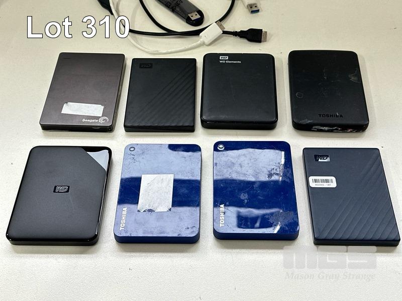 8 x ASST PORTABLE HARD DRIVES INC. - 1 x WD 2TB - 2 x TOSHIBA 1TB - 2 x WD 1TB - 1 x SEAGATE 1TB - 1 x TOSHIBA 500GB - 1 x WD 500GB WITH 5 x USB 3.0 CABLES