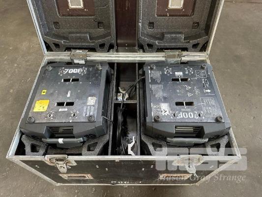 2 x MARTIN MAC 700 PROFILE MOVING HEAD LIGHTS, IN MOBILE ROAD CASE, 95 x 59 x 70cm