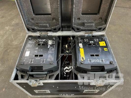 2 x MARTIN MAC 700 PROFILE MOVING HEAD LIGHTS, IN MOBILE ROAD CASE, 95 x 59 x 70cm