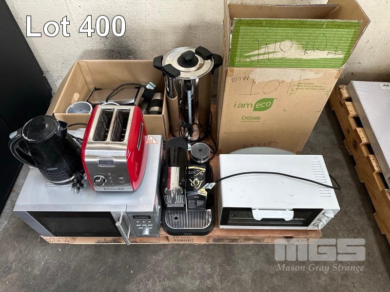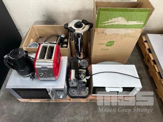 MICROWAVE, TOASTER, KETTLE, COFFEE POD MACHINE, GRILL, URN, SANDWICH PRESS, PAPER COFFEE CUPS
