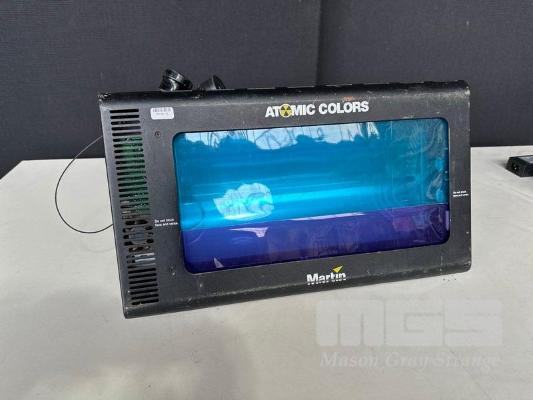 4 x MARTIN ATOMIC 3000 DMX STROBE LIGHTS WITH ATOMIC COLORS SCROLLER ADD-ON UNITS