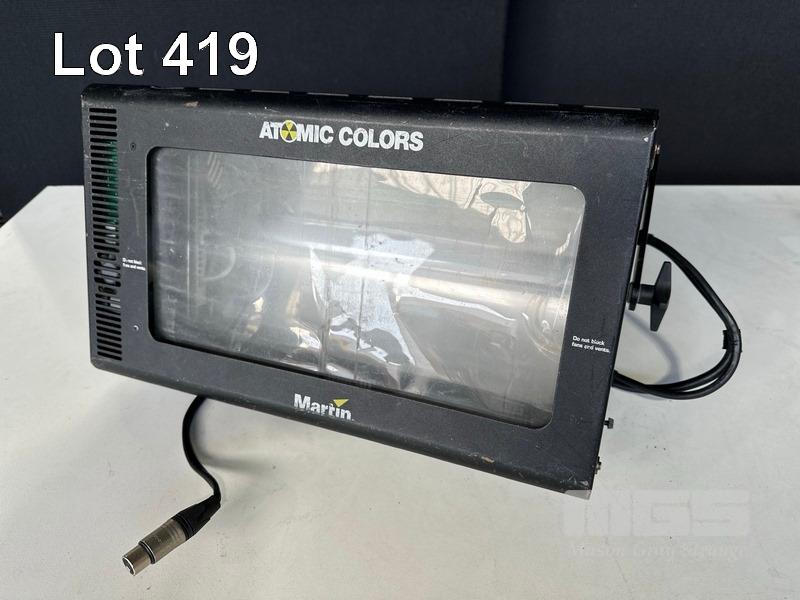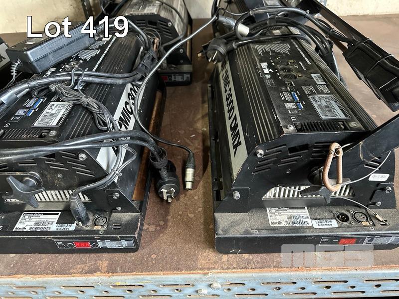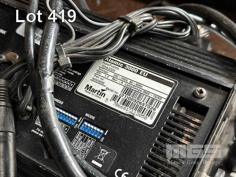 4 x MARTIN ATOMIC 3000 DMX STROBE LIGHTS WITH ATOMIC COLORS SCROLLER ADD-ON UNITS
