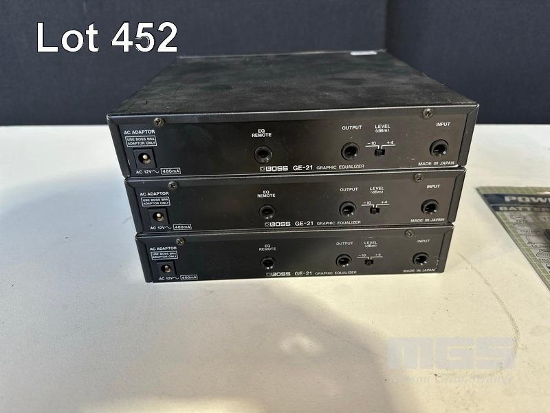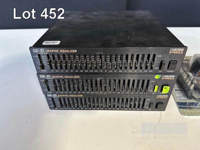 3 x BOSS PRO GE-21 GRAPHIC EQUALIZERS WITH 1 x POWERTECH POWER SUPPLY