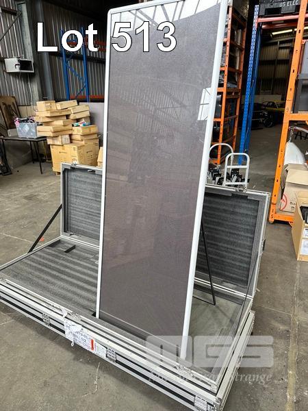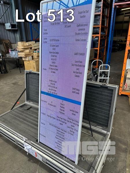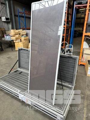 2 x FREESTANDING VERTICAL LED SCREENS, EACH 196 x 70cm WITH 128x64 LED DISPLAY MODULE PANELS (NO CONTROLLER) IN 2 x MOBILE ROAD CASES, EACH 210 x 82 x 16cm