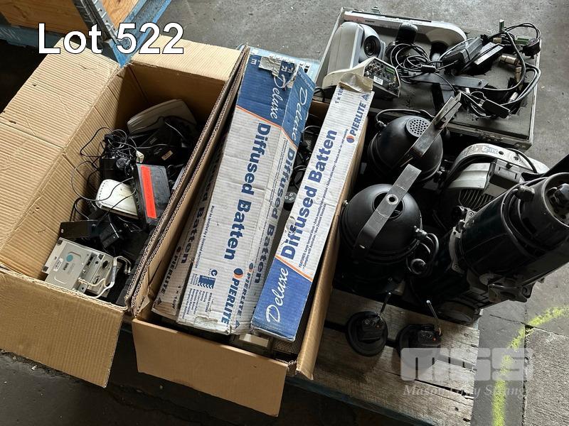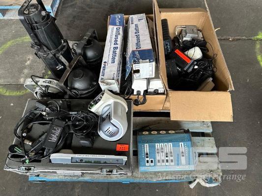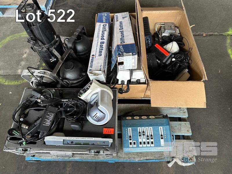 1 x PALLET LOT ASST AV EQUIPMENT INC. SONY PTZ CAMERA & CASE, LIGHTS, DIFFUSED BATTEN LIGHTS, RUGGED NETWORKING, CISO ACCESS POINT, JANDS FOUR CHANNEL DIMMER, MOTOROLA TWO-WAY RADIOS ETC