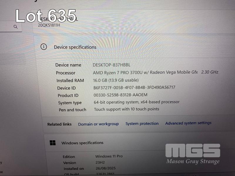 LAPTOP, LENOVO THINKPAD T495s, TYPE 20QK, AMD RYZEN 7 PRO 3700U @ 2.3GHz, 16GB DDR RAM, 512GB NVMe M.2 SSD, 14" TOUCHSCREEN (1920x1080), Wi-Fi, BLUETOOTH, WINDOWS 11 PRO INSTALLED & USB-C POWER SUPPLY (NOTE: MINOR MARKS ON SCREEN) S/N:PC1DX1M3