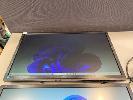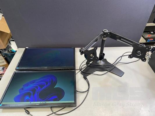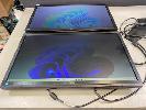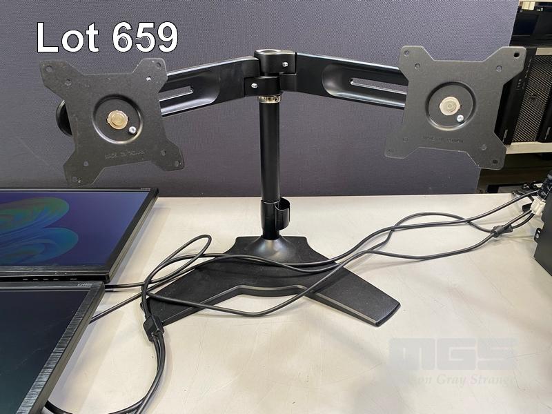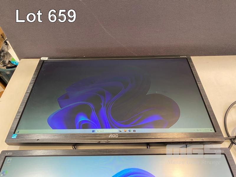 2 x MONITORS, AOC e2460Sd 24" LED WIDESCREEN, VGA, DVI (WITH CABLES) WITH FREESTANDING DUAL MONITOR STAND (NOTE: 1 x MONITOR WITH SMALL SCRATCH)
