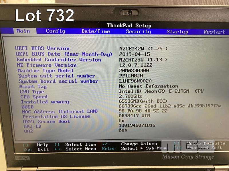LAPTOP, LENOVO THINKPAD P52 MOBILE WORKSTATION, TYPE 20MA, XEON E-2176M @ 2.7GHz, 64GB DDR4 RAM, 1TB NVMe M.2 SSD, 15.6" WIDESCREEN (1920x1080), 4GB NVIDIA QUADRO P2000 VIDEO, Wi-Fi, BLUETOOTH, WINDOWS 11 PRO INSTALLED & POWER SUPPLY S/N:PF1LM8JH