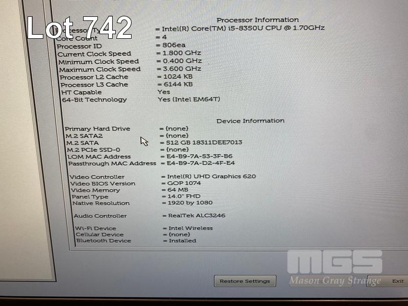 LAPTOP, DELL LATITUDE 5490, CORE i5 8350U (8TH GEN) @ 1.7GHz, 8GB DDR4 RAM, 512GB M.2 SSD, 14" WIDESCREEN (1920x1080), INTEL UHD GRAPHICS 620, Wi-Fi, BLUETOOTH, WINDOWS 11 HOME INSTALLED & POWER SUPPLY S/N:8QJ7JR2