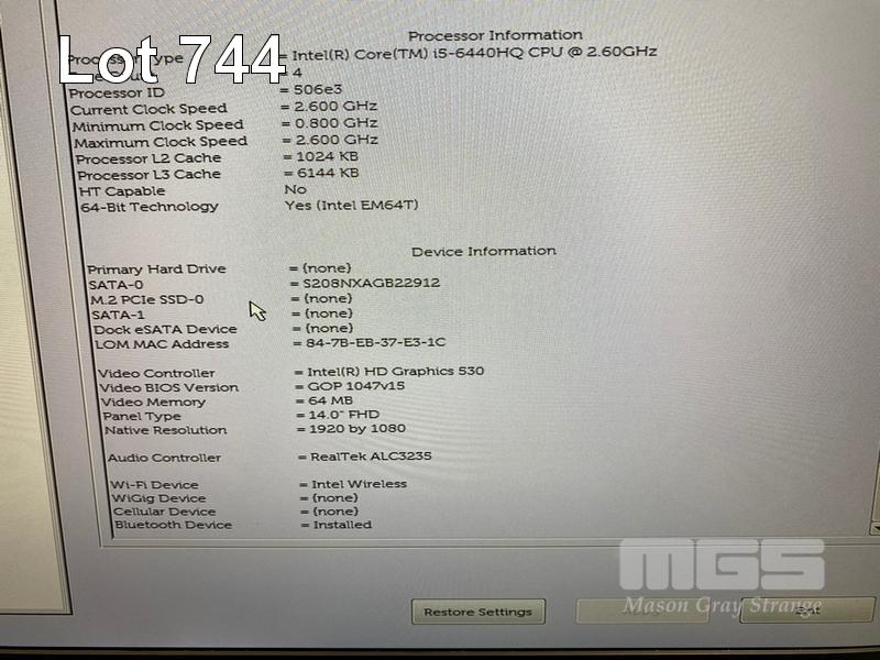 LAPTOP, DELL LATITUDE E5470, CORE i5 6440HQ (6TH GEN) @ 2.6GHz, 8GB DDR4 RAM, 256GB SSD, 14" WIDESCREEN (1920x1080), INTEL HD GRAPHICS 530, Wi-Fi, BLUETOOTH, WINDOWS 10 HOME INSTALLED & POWER SUPPLY (NOTE: BATTERY NOT HOLDING CHARGE) S/N:43GVR72