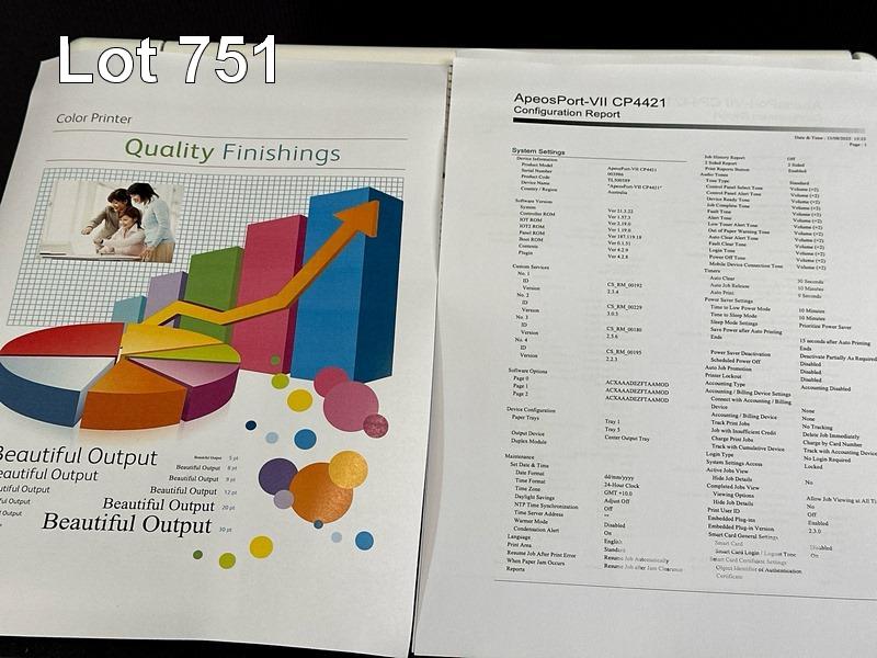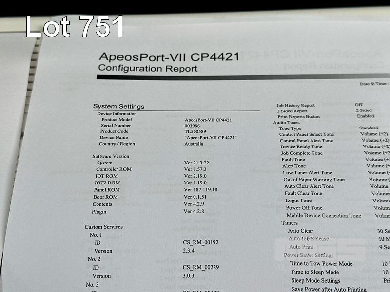 PRINTER, FUJI XEROX APERPORT-VII CP4421 COLOUR LASER, USB, NETWORK, 113 COLOUR & 138 B&W PAGES (TEST PAGE ATTACHED) S/N:003986