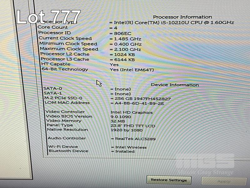 ALL-IN-ONE PC, DELL INSPIRON 5490, CORE i5 10210U (10TH GEN) @ 1.6GHz, 8GB DDR4 RAM, 256GB NVMe M.2 SSD, INBUILT 23.8" TOUCHSCREEN (1920x1080), Wi-Fi, BLUETOOTH, WINDOWS 11 HOME INSTALLED, KEYBOARD & MOUSE S/N:5891F92