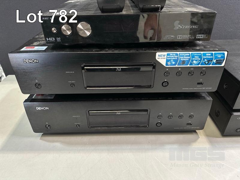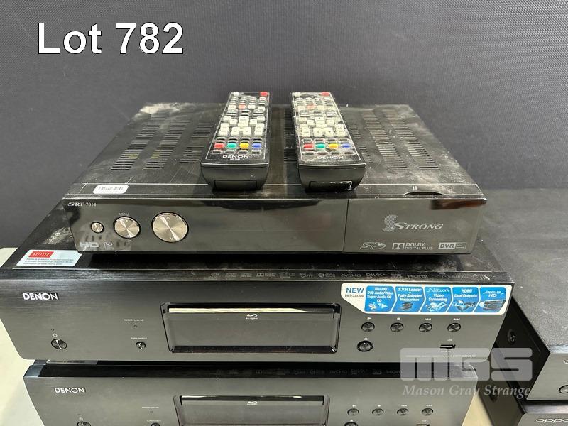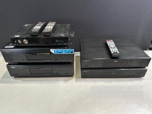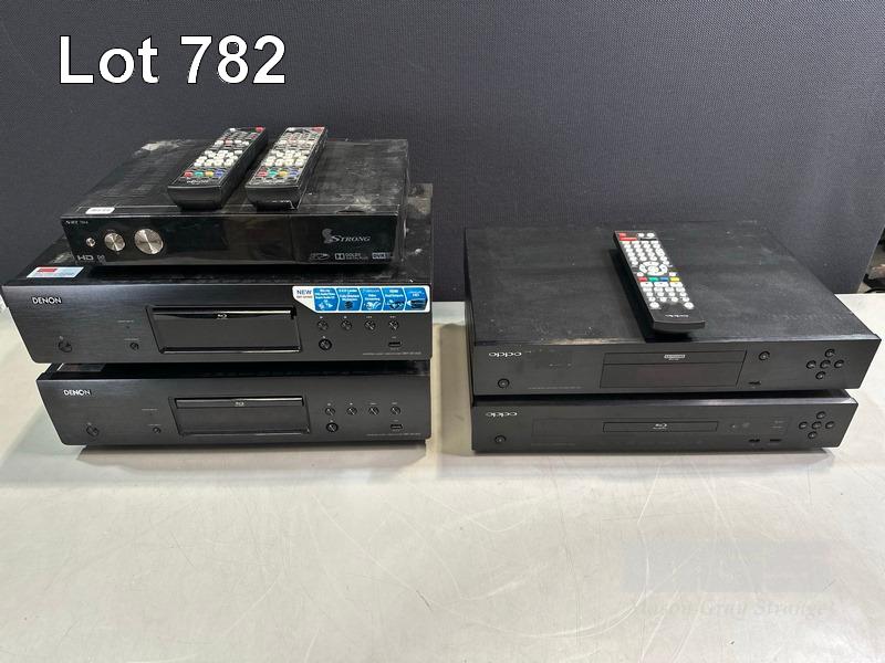 1 x STRONG SRT7014 SET-TOP BOX (NO REMOTE) 2 x DENON DBT-3313UD UNIVERSAL AUDIO/VIDEO PLAYERS WITH REMOTES 1 x OPPO UDP-203 ULTRA HD BLU-RAY PLAYER WITH REMOTE 1 x OPPO BDP-103AU BLU-RAY PLAYER (NO REMOTE)