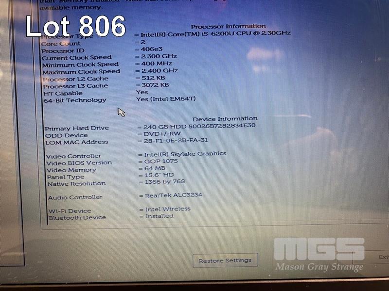 LAPTOP, DELL INSPIRON 5559, CORE i5 6200U (6TH GEN) @ 2.3GHz, 8GB DDR3 RAM, 240GB SSD, DVD-RW, 15.6" WIDESCREEN (1366x768), 2GB AMD RADEON R5 M335 VIDEO, Wi-Fi, BLUETOOTH, WINDOWS 10 HOME INSTALLED & POWER SUPPLY S/N:DPNRKC2