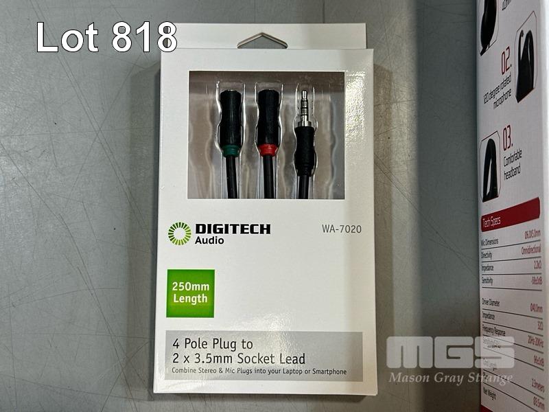 12 x SOMIC SH-100 STEREO HEADPHONES (IN BOX) 10 x DIGITECH 4 POLE PLUG TO 2 x 3.5mm SOCKET LEADS (IN BOX)