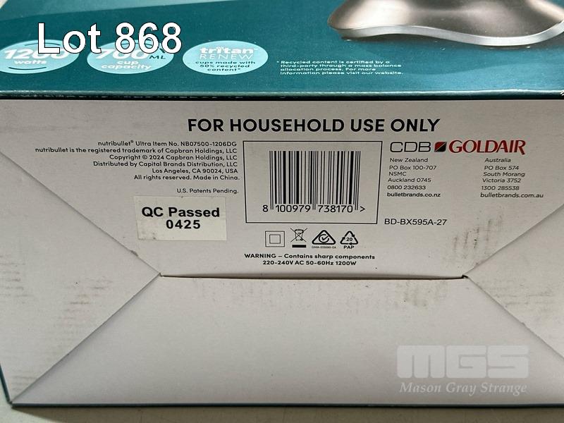 NUTRIBULLET ULTRA 1200 BLENDER (AS NEW, IN BOX)