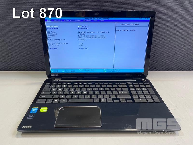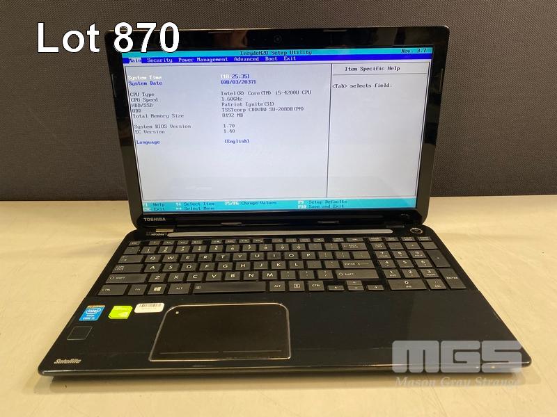 5 x LAPTOPS INC. - 4 x TOSHIBA SATELLITE L50-A, CORE i5 4200U @ 1.6GHz, 4GB RAM, 240GB SSD - 1 x TOSHIBA SATELLITE PRO L50-B, CORE i5 4210U @ 1.7GHz, 8GB RAM, 480GB SSD (WITH POWER SUPPLPIES) S/N:XD137407Q, 1E183608U, 7E037573C, 1E210740U, 9D040378Q