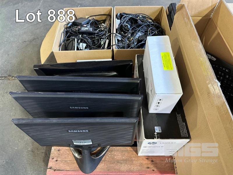 1 x PALLET LOT ASST CABLES, CANON EOS 300D CAMERA, MONITORS (NO POWER SUPPLIES), CAMERA TRIPOD, KEYBOARDS, CABLE MANAGEMENT, HP TONER CARTRIDGE