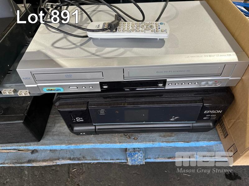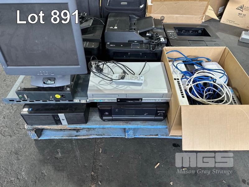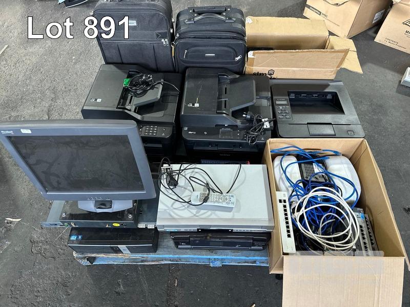 1 x PALLET LOT ASST PRINTERS (NO TONER), CABIN SUITCASES, NETWORKING, DVD/VCR COMBO, HP COMPUTER, ETC