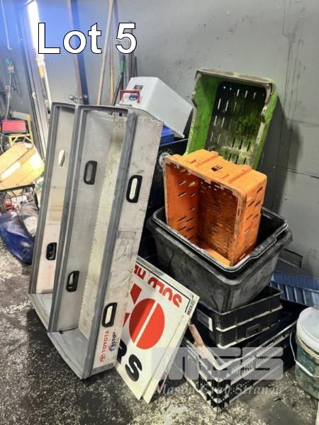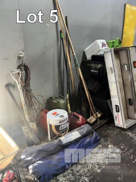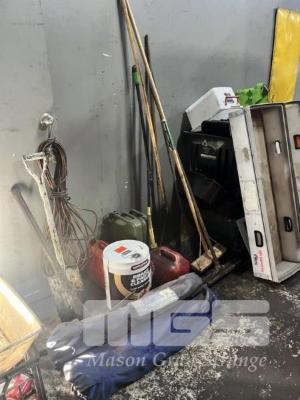 LARGE QUANTITY HAND TOOLS, CRATES, JERRY CANS, & PICNIC CHAIRS
