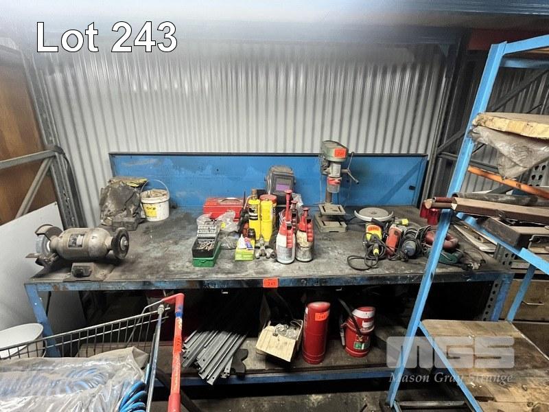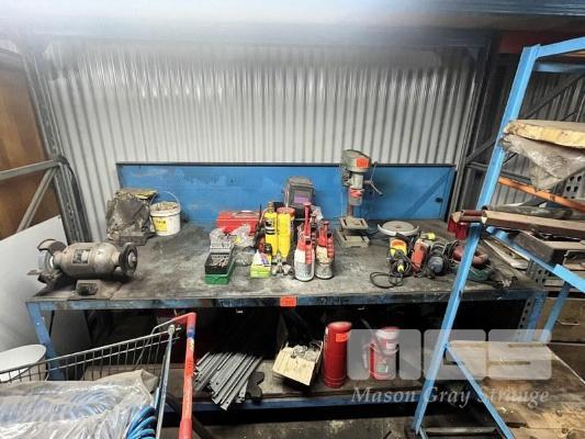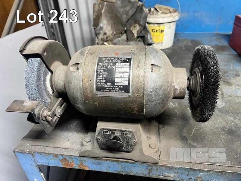 HEAVY DUTY STEEL BENCH FITTED WITH DOUBLE ENDED BENCH GRINDER,